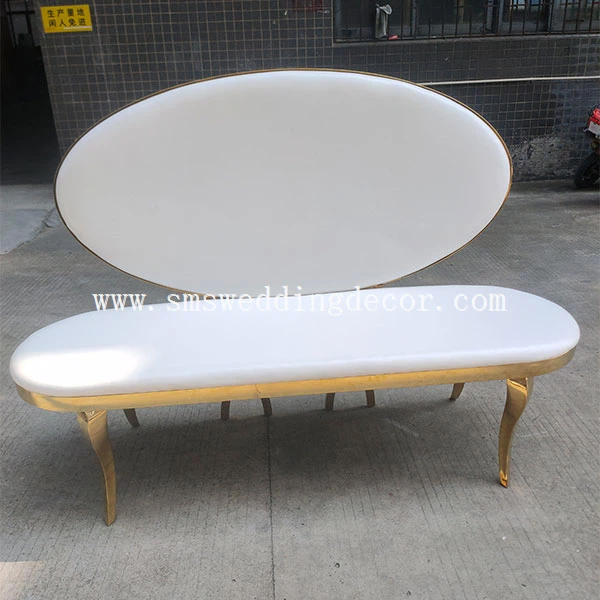 Zadnja stranadupla sofaje ovalnog oblika. Sveukupni dizajn je jednostavan i elegantan, te ima dobru stabilnost. Možete ga koristiti kao sofu za mladence na svadbi, ili ga staviti u hotele i druge prilike. Možete ga ukrasiti i cvijećem i drugim ukrasima kako biste optimizirali atmosferu scene, a ima i dobre foto efekte.